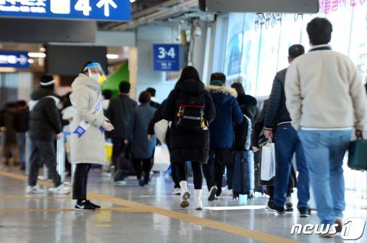 설 연휴를 하루 앞둔 28일 오후 광주 광산구 광주송정역에서 귀성객들이 열차 탑승을 위해 이동하고 있다. 2022.1.28/뉴스1 © News1 정다움 기자