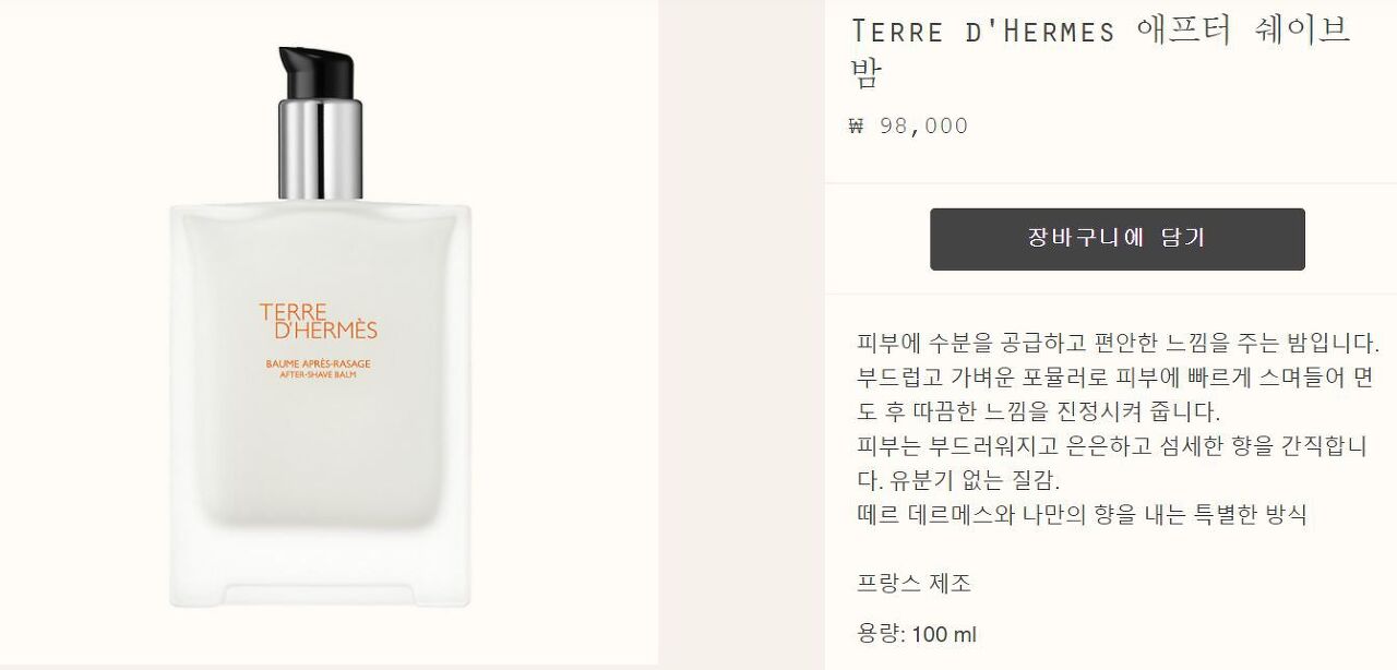 ‘떼르 데르메스 애프터쉐이브 밤’(100ml)/에르메스 홈페이지