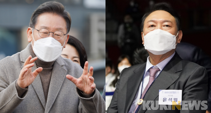 20대 대선 가상대결에서 윤석열 국민의힘 대선후보가 이재명 더불어민주당 대선후보를 오차범위 밖에서 앞섰다.