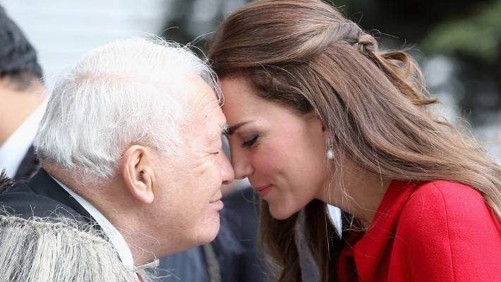 Nearing the conclusion of the pōwhiri, the manuhiri now move across the marae atea to hongi the tangata whenua. This involves the shaking of hands and a gentle pressing of noses (possibly also a kiss on the cheek, signifying the sacred breath of life – the mauri (life principle) – mingling together as the two become one.