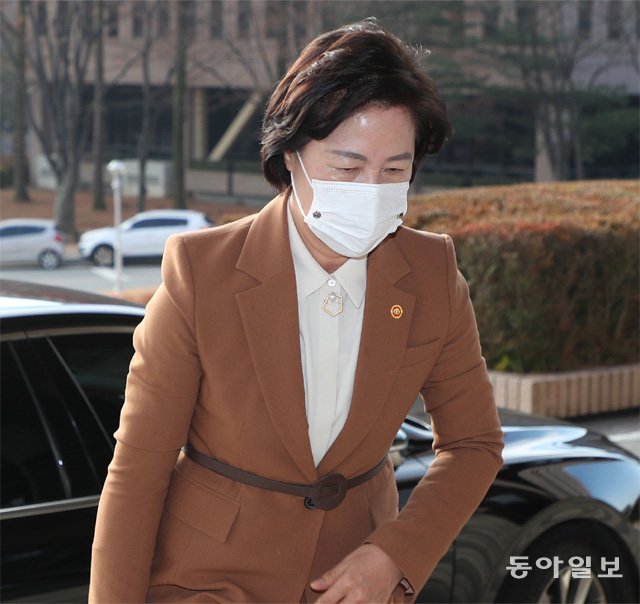 추미애 법무부 장관이 27일 법무부 과천청사로 출근하고 있다. 추 장관은 이날 검사들의 집단 반발에 대해 “검사들이 입장문을 내며 이번 판사 불법 사찰 문건에 대해선 아무런 언급이 없고, 당연시하는 듯한 태도를 보고 충격을 받았다”는 내용의 첫 입장문을 공개했다. 과천=김재명 기자 base@donga.com
