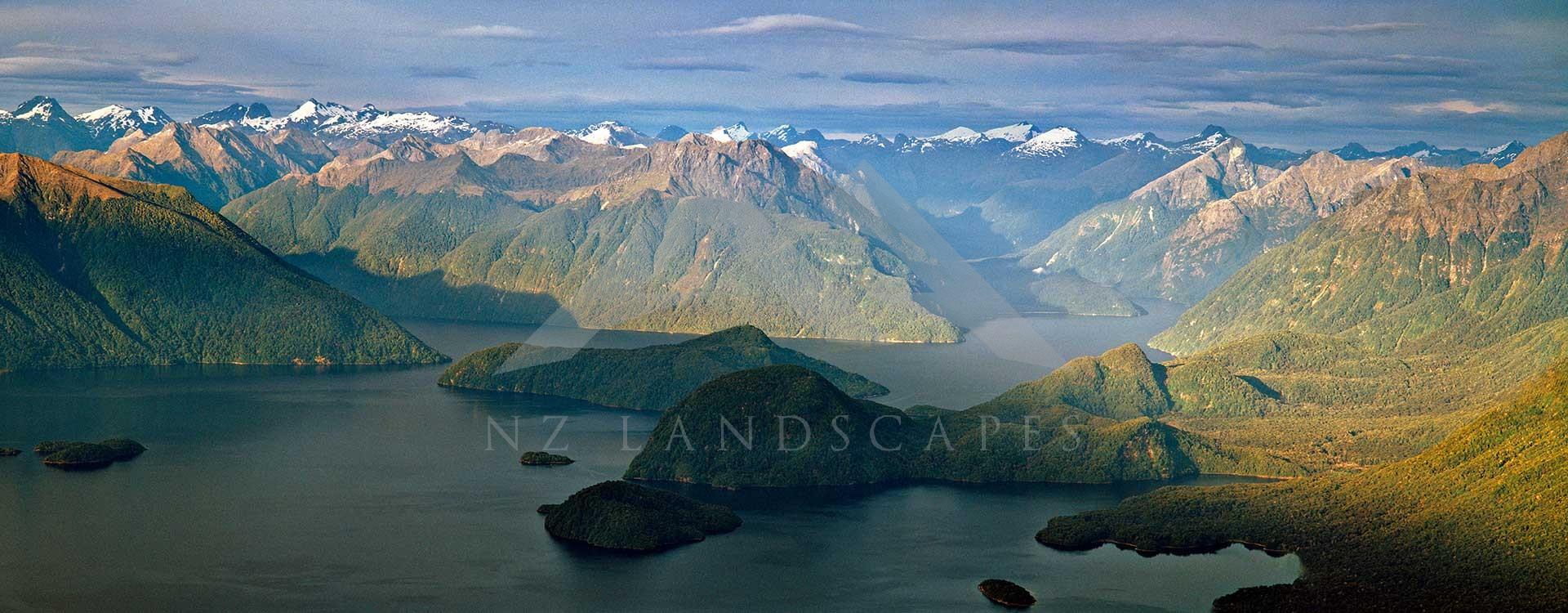 Aerial view of Lake Manapouriin Fiordland National Park in the South Island of New Zealand.