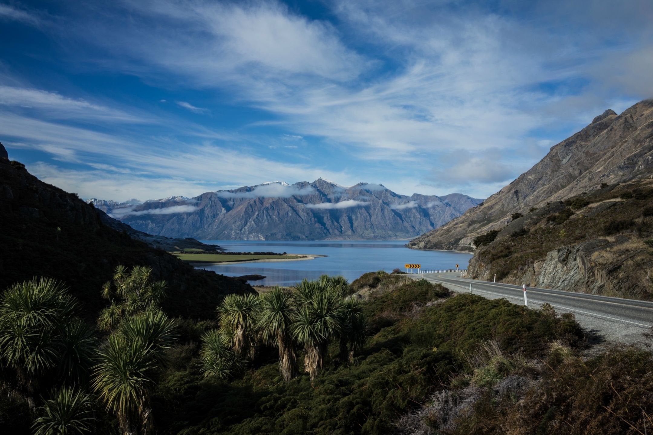 Major crossings of the Southern Alps in the New Zealand road network include Lewis Pass (SH 7), Arthur's Pass (SH 73), Haast Pass (SH 6), and the road to Milford Sound (SH 94).