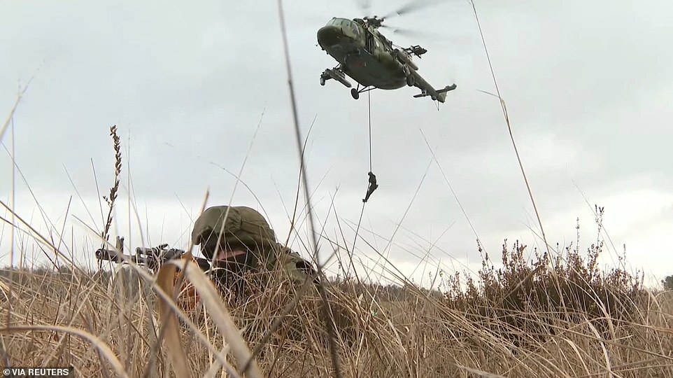 Having sent UK personnel to train Ukrainians on the anti-tank missiles supplied by Britain, Mr Heappey said: 'All of them will be withdrawn. There will be no British troops in Ukraine if there is to be a conflict there.'