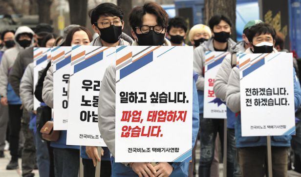 민주노총 택배노조의 CJ대한통운본부가 파업을 시작한 건 작년 12월 28일부터다. 파업 참여 노조원은 1500여 명가량으로, 전체 CJ대한통운 택배기사 2만명의 8% 정도다. 파업이 장기화되는 데다 노조원들이 비노조원들의 업무까지 방해하면서 피해는 눈덩이처럼 커지고 있다. 파업으로 인해 지금까지 택배 6만 상자가량이 제때 배송되지 못한 상황이다. 비노조 택배기사들은 SNS와 게시판에 “파업 이후 고객사들이 다른 택배 회사로 이탈하면서 취급 물량이 10%가량 줄었다” “한 달 수입이 100만~200만원씩 줄었다”고 토로하고 있다.
