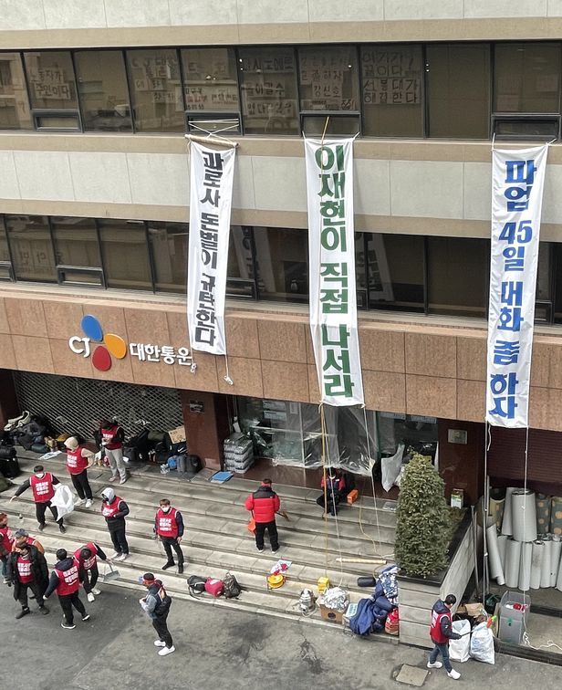 “이재현 나와라”... CJ택배기사의 8% 노조가 본사 점거