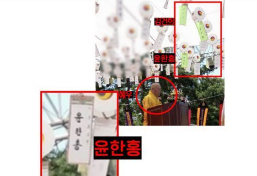 김 의원은 “이들의 이름이 적힌 등은 일반적 불교 행사에 등장하는 연등이 아니다. 일반적으로 등을 달려면 등값을 내는데 이들은 상당한 액수의 등값을 냈을 것으로 추정된다”고도 지적해다.