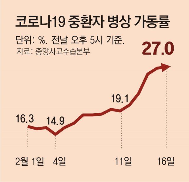 문제는 아직 오미크론 유행이 정점에 이르지 않았다는 점이다. 하지만 정부는 모임 인원 6명, 영업시간 오후 9시인 현행 거리 두기를 21일부터 완화하는 방안을 검토하고 있다. 이럴 경우 7일 정부가 예상했던 코로나19 정점 수치(2월 말 하루 13만∼17만 명)보다 상황이 악화될 가능성이 높다. 고재영 질병관리청 대변인은 이날 “고령층 등 유행 상황이 급변해 3월 이후 상황과 정점 도달 시점, 규모를 현 시점에서 예측하기 어렵다”고 말했다.
