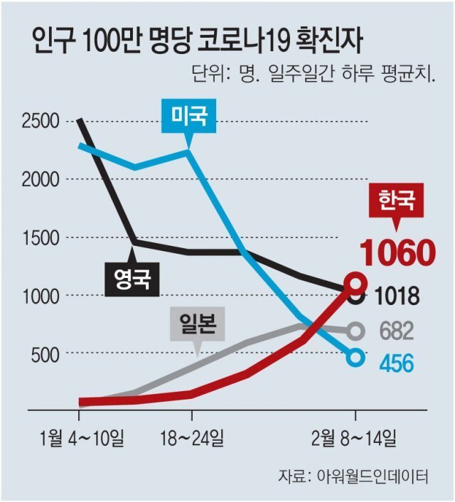 [오미크론 대확산]100만명당 하루 확진 1060명 달해