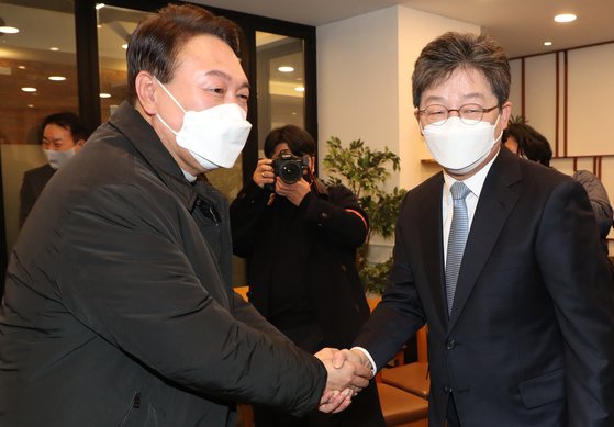 한편 윤 후보는 이날 오후 서울 여의도 한 카페에서 경선에서 경쟁했던 유승민 전 의원과 회동하며 ‘원팀’ 기조에 힘을 실었다. 두 사람의 만남은 지난해 11월 5일 경선 이후 처음이다. 유 전 의원은 윤 후보와 20분 가량 독대한 뒤 기자들과 만나 “경선 승복연설에서 말씀드린 그대로 정권교체를 위해 백의종군하면서 협력하겠다. 아무 조건도, 직책도 없이 열심히 돕겠다”고 말했다.