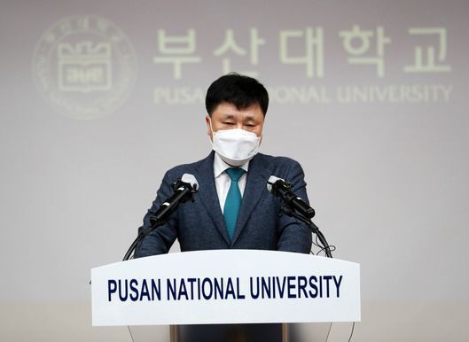 부산대 김홍원 부총장이 24일 부산 금정구 부산대학교 본관에서 조국 전 장관 딸 조민씨의 의학전문대학원 입시 의혹과 관련한 최종 결론을 발표하고 있다. 부산대는 “입학전형공정관리위원회 ‘자체조사 결과서’와 정경심 교수의 항소심 판결, 소관 부서의 의견을 종합적으로 검토한 결과 2015학년도 의학전문대학원 입학을 취소하기로 결정했다”고 밝혔다. 2021.8.24 연합뉴스
