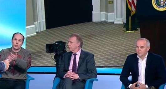 18일 '채널 우크라이나' TV 토론 프로그램 '표현의 자유'(진행 사비크 슈스터)에서는 러시아의 침공 위기를 둘러싼 패널들의 열띤 논쟁이 펼쳐졌다.