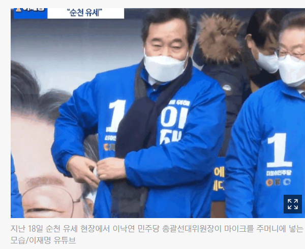 이낙연은 18일 오전 전남 순천 연향패션거리에서 이재명 후보 지원 유세에 나섰습니다. 그러나 이날 이낙연이 연설을 하던 도중 '이재명 선거송'이 흘러나와 흐름이 끊기는 일이 발생했습니다.