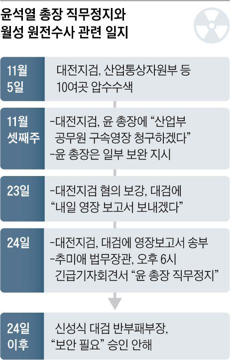 윤석열 총장 직무정지와 월성 원전수사 관련 일지
