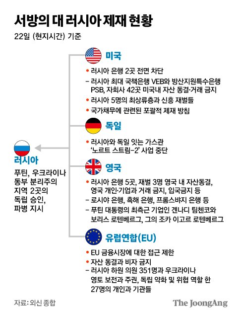 서방의 대 러시아 제재 현황. 그래픽=김주원 기자 zoom@joongang.co.kr