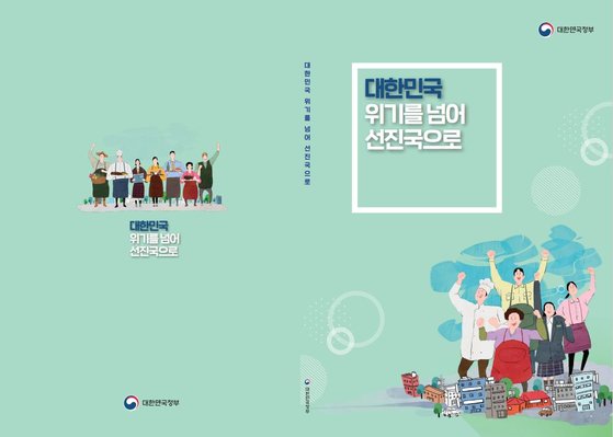 정부가 지난해 12월 23일 발간해 전국에 2만부를 배포한 ‘대한민국 위기를 넘어 선진국으로’ 책자의 표지. 국민의힘은 “내용이 민망할 뿐 아니라 대선을 앞두고 정부가 선거에 개입한 것이나 마찬가지”라고 비판했다. 국민의힘 백종헌 의원실 제공