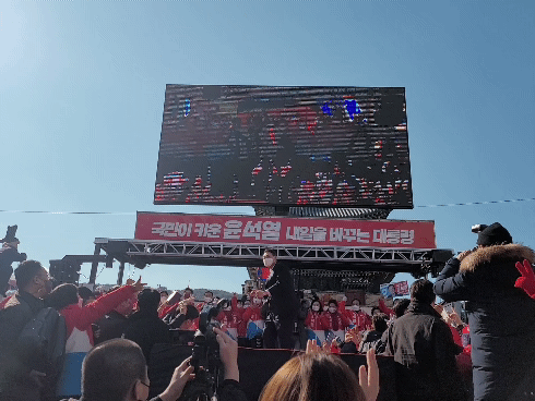 '윤석열 후보 보기 위해 몰린 시민들로 발 디딜 틈이 없어'