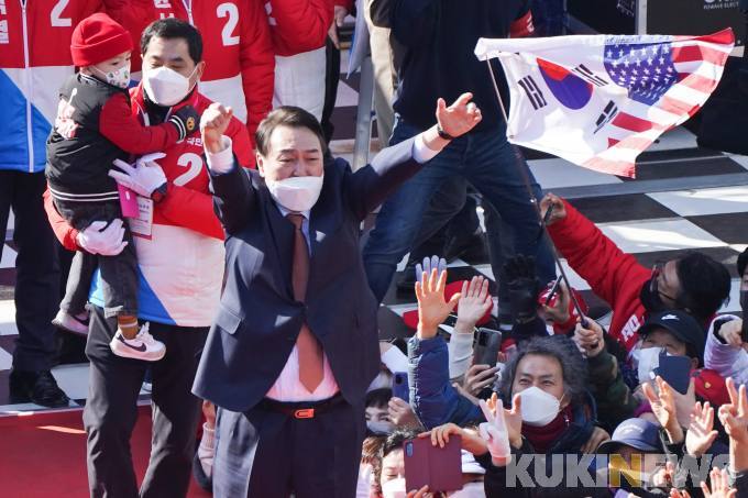 윤석열 국민의힘 대선후보가 이재명 더불어민주당 대선후보의 ‘본진’ 수원을 찾았다. 수원 시민들은 뜨거운 환호로 윤 후보를 맞이했다.