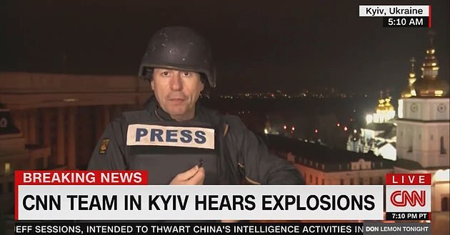 Further evidence of the dramas of live reporting in Ukraine was provided overnight, when a CNN journalist was filmed in the early hours ducking for cover and strapping on protective gear of his own.