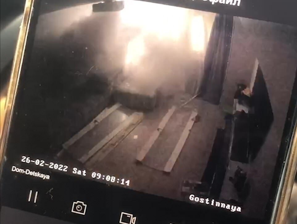 CCTV images show the inside of the Kyiv apartment block moments before it was attacked by a Russian missile