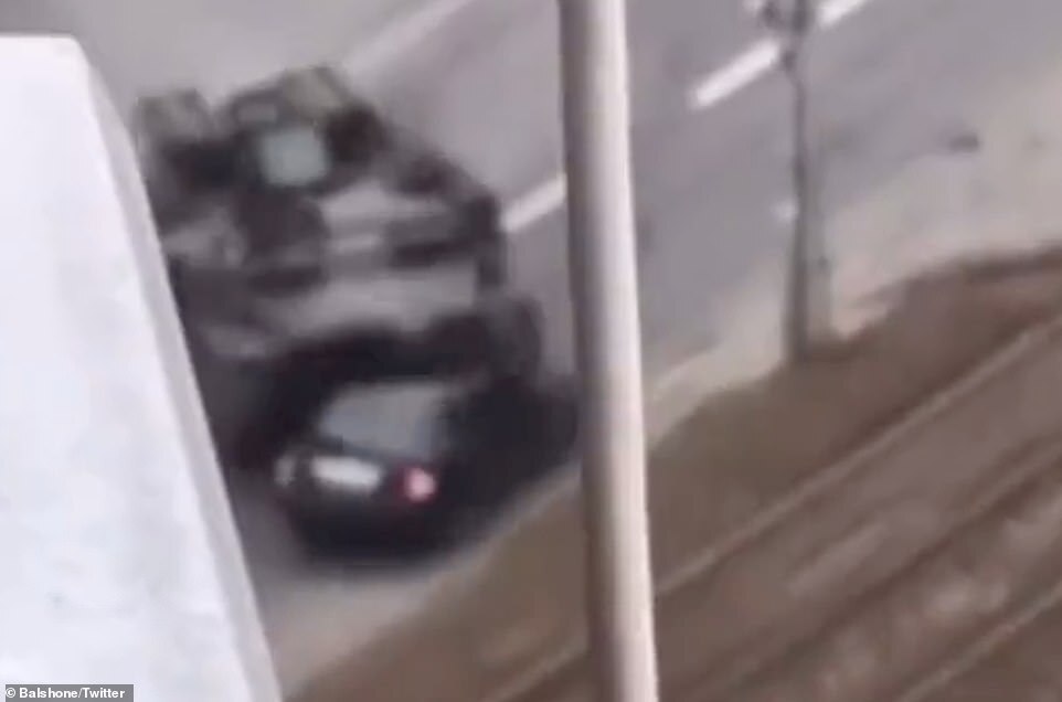 Video shows the shocking moment a Russian tank runs over the car of a civilian