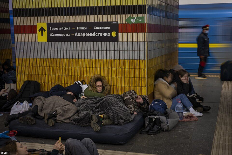 Kyiv's inhabitants take refuge in the subway on Friday night