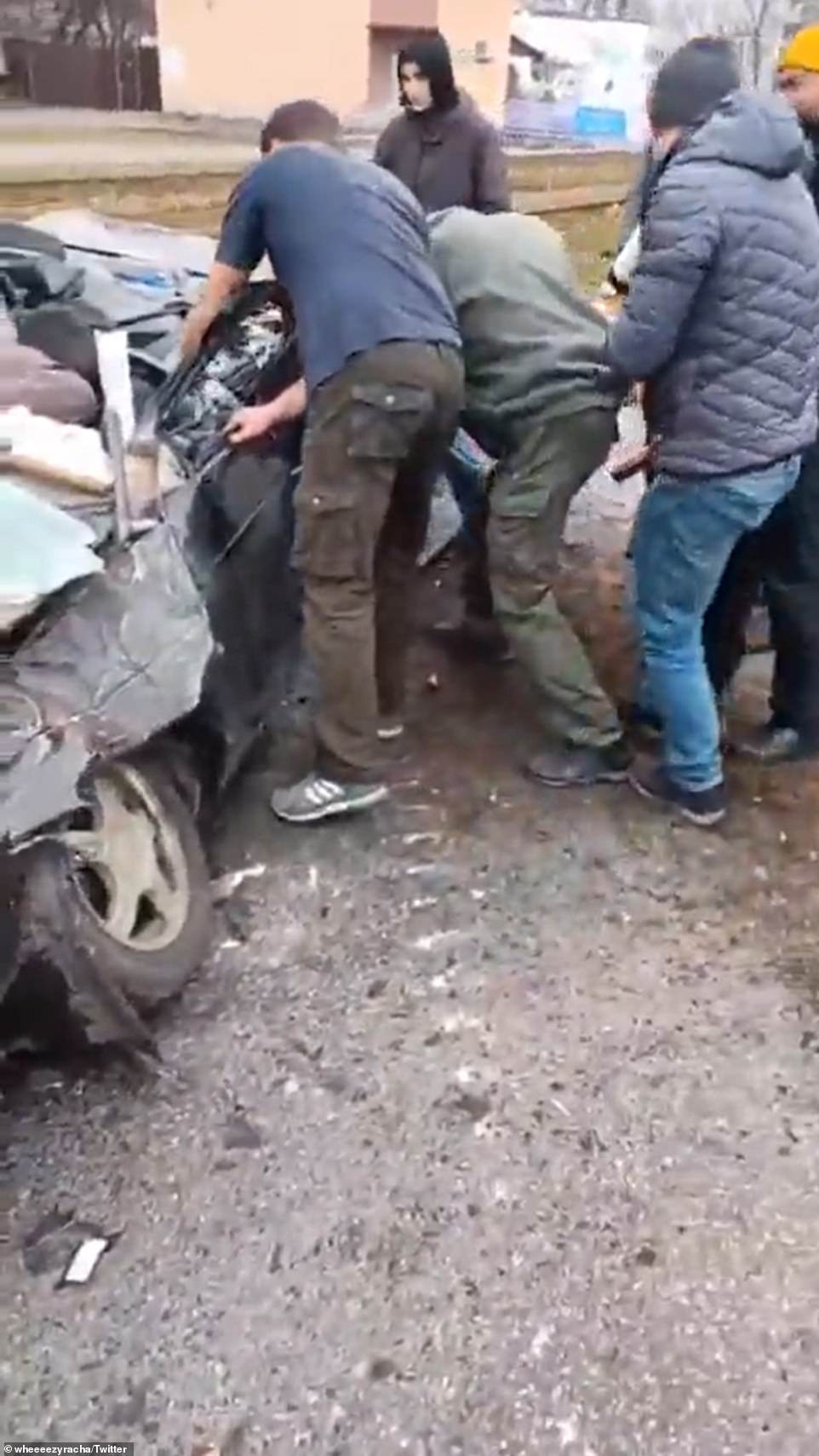 Incredibly the man appeared to have survived the collision with the Russian tank