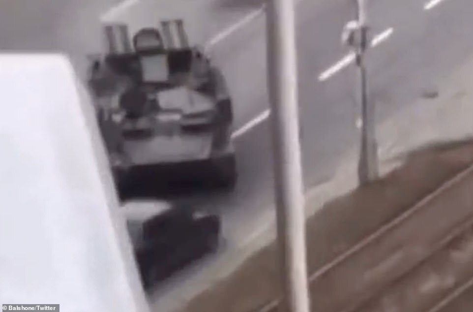 The tank was believed to be a Strela-10 — an anti-aircraft vehicle used by both the Russian and Ukrainian armies.