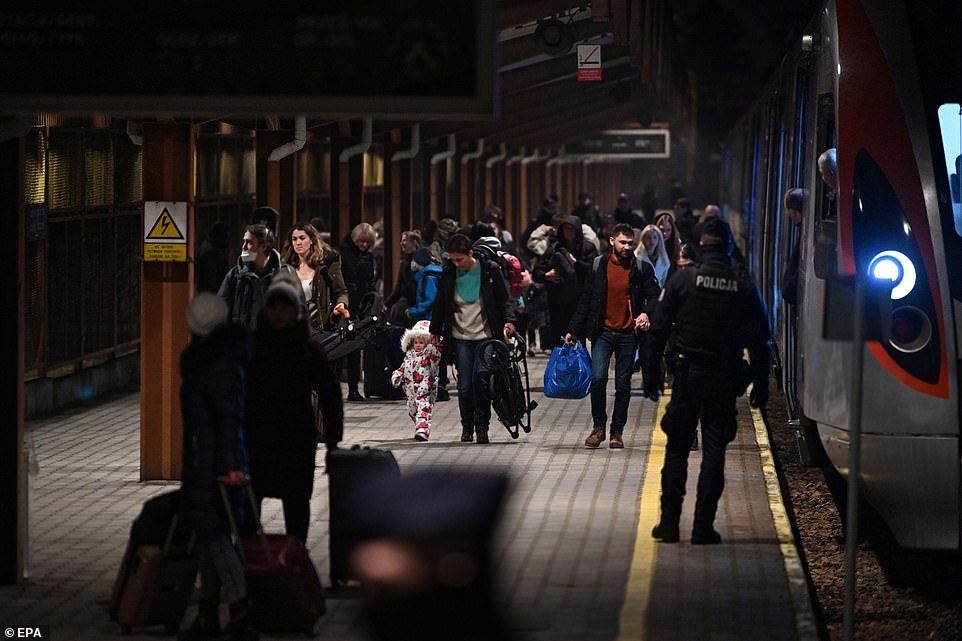 Kyiv's streets were empty on Friday night as people sought shelter in the city's subway system. Many had fled, with buses and trains out of the city packed with people desperate to escape, and long lines of traffic choking the roads.