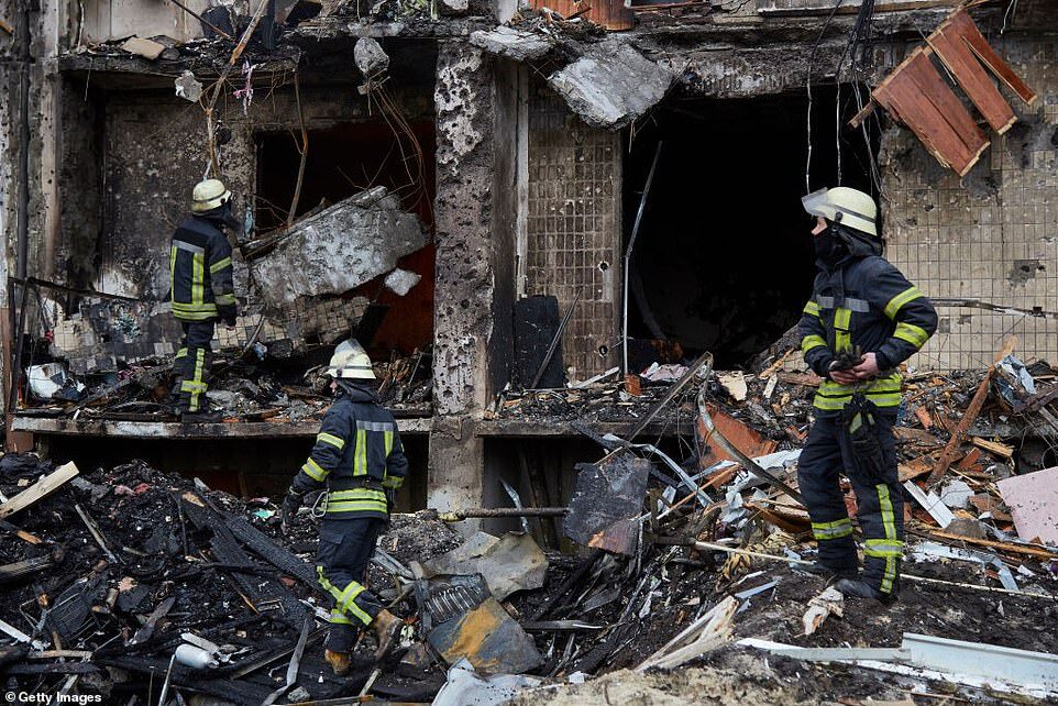 A high-rise apartment block in Kyiv was hit by a devastating missile this morning as fighting continues to rage in the capital between Russian attackers and Ukrainian forces
