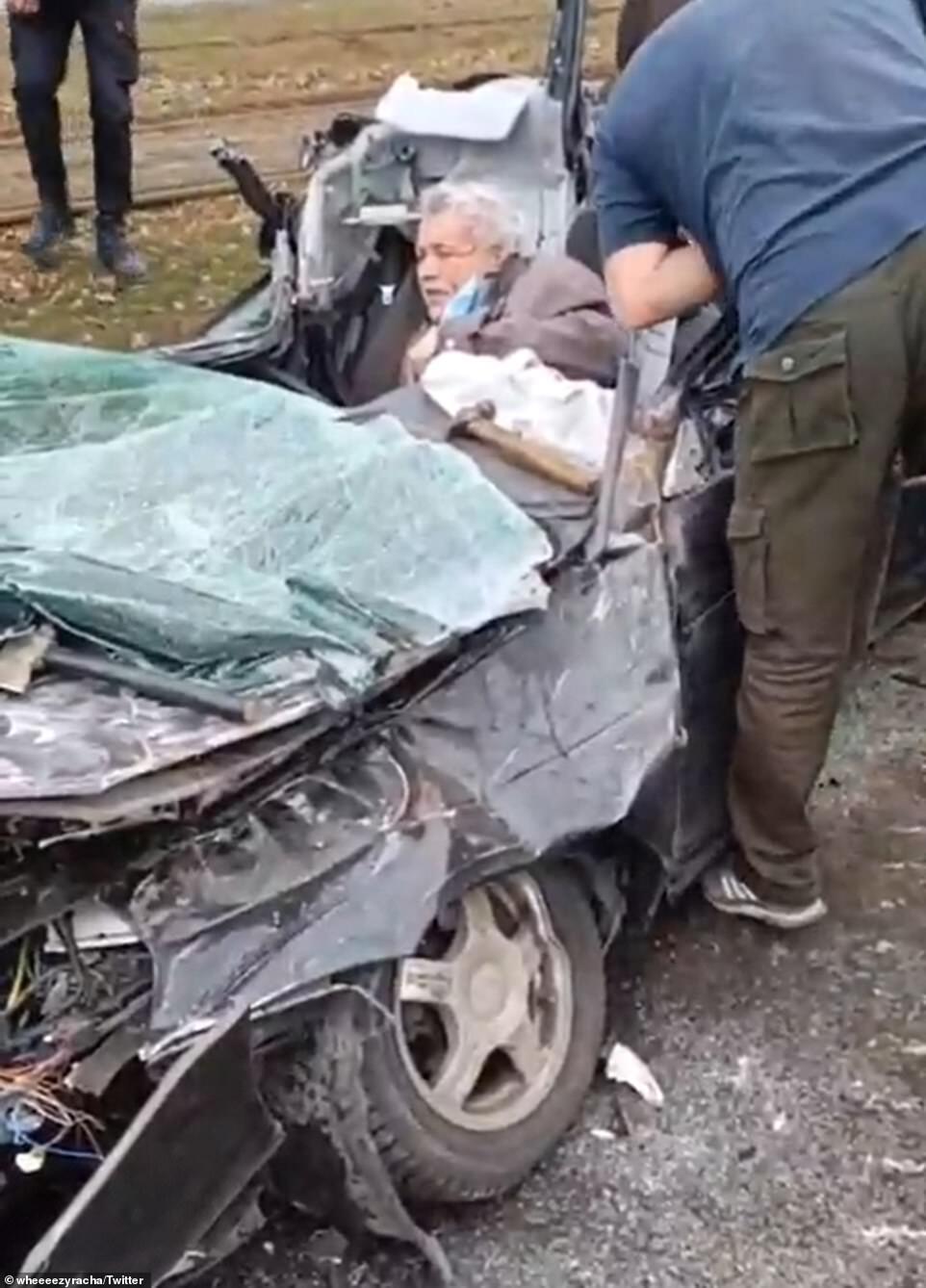 Incredibly, the elderly driver was still alive and pulled free from the wreckage