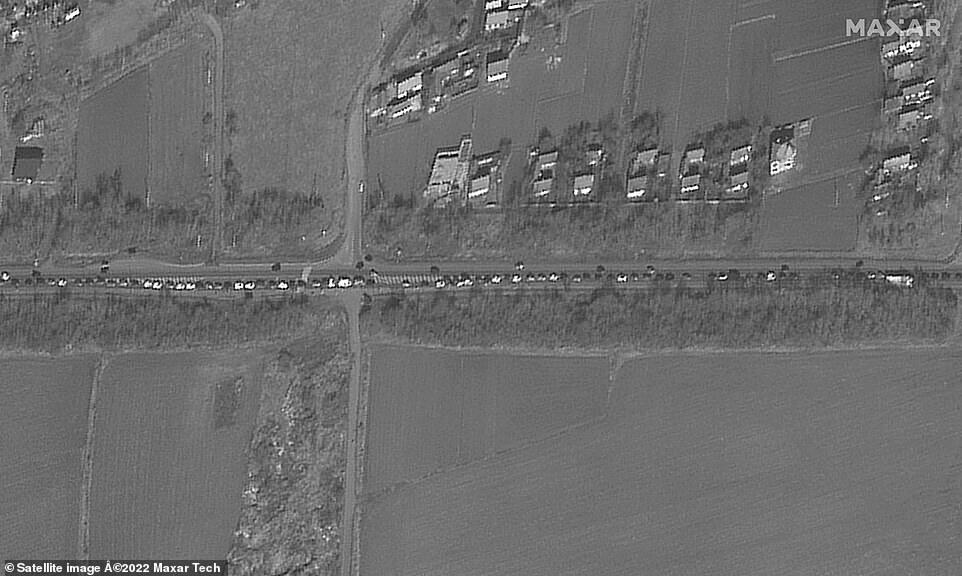 Meanwhile, satellite images show a huge queue of trucks and cars waiting in a traffic jam leaving Ukraine, near the Romanian border in Siret.
