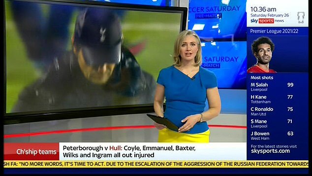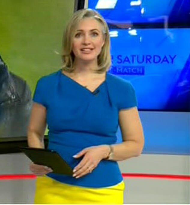 The presenter was wearing a blue top and a yellow skirt - the colours of the Ukrainian flag - to show her support for the war-torn country amid Russia's invasion.
