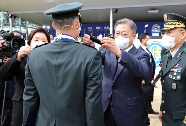 문재인 대통령은 이날 경북 영천에서 열린 육군 3사관학교 졸업, 임관식에 참석했다. 김정숙 여사도 함께 했다. 이날 행사는 실시간으로 TV와 유튜브 등을 통해 생중계됐다. 청와대는 “문 대통령이 집권 이후 매년 육군, 공군, 해군, 간호사관 등 졸업식에 모두 참석했다”며 “올해도 그 일정을 소화한 것일뿐”이라고 했다.