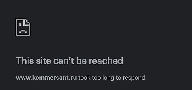 A similar error message was also seen on Kommersant's (pictured) websites on Monday morning