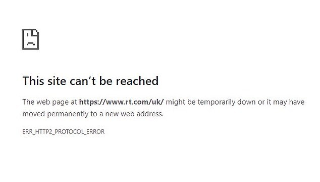 When MailOnline attempted to access the RT site this morning, it was still inaccessible and only displayed an error message that said 'this site can't be reached'