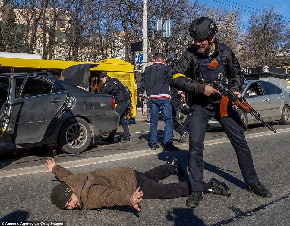 Kharkiv, which has witnessed some of the heaviest fighting of the war so far, was hit by rockets fired from Russian positions on Monday - with video showing a shopping centre in the Serpnia area blanketed by explosions. A military source told MailOnline that the videos showed 'cluster' munitions had been used.