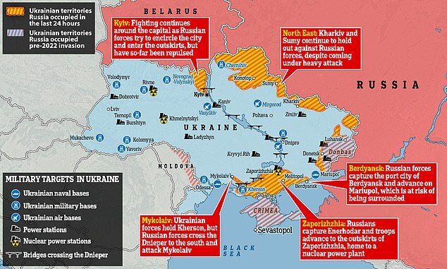 In the early hours, Russia invited all Ukrainian citizens to leave the city via a 'safe' highway - sparking fears that the bombardment could be about to dramatically step up.
