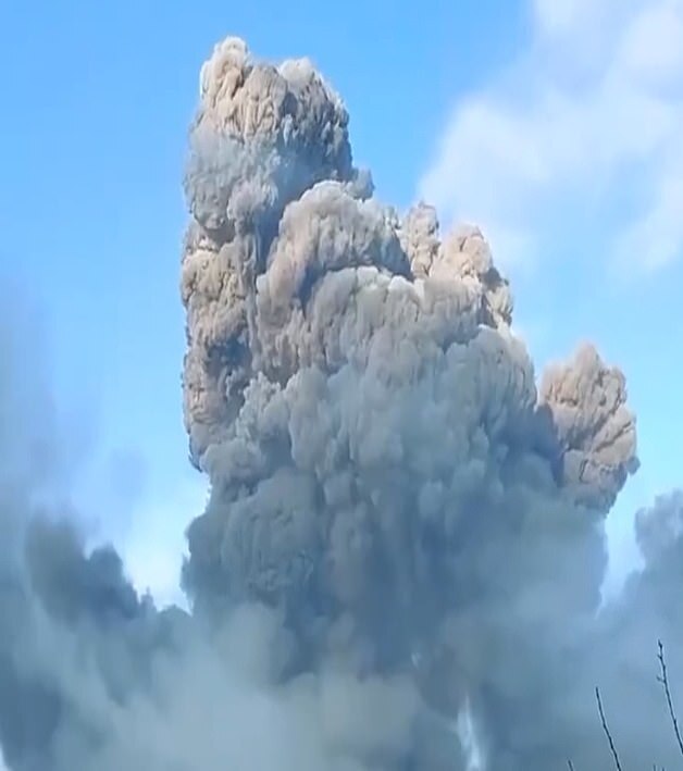 A huge explosion seen at Vinnytsia military base, in central Ukraine, as the country came under all-out attack by Russia