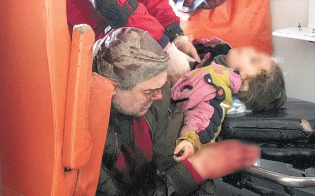 지난달 27일(현지 시간) 우크라이나 동부 도네츠크주 마리우폴에서 러시아군 포격에 크게 다친 여섯 살 여자 아이가 구급차에서 심폐소생술을 받고 있다. 얼굴이 피투성이인 아이 아버지가 옆에서 흐느끼고 있다. 이름이 알려지지 않은 이 아이는 병원으로 옮겨졌지만 숨졌다. 아이를 살리려 애썼던 한 의료인은 “아이의 눈을 블라디미르 푸틴 러시아 대통령에게 보여줘라”라고 규탄했다. 러시아의 침공이 시작된 지난달 24일부터 이날까지 나흘간 최소 16명의 우크라이나 어린이가 희생됐다. 마리우폴=AP 뉴시스