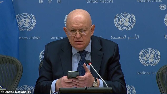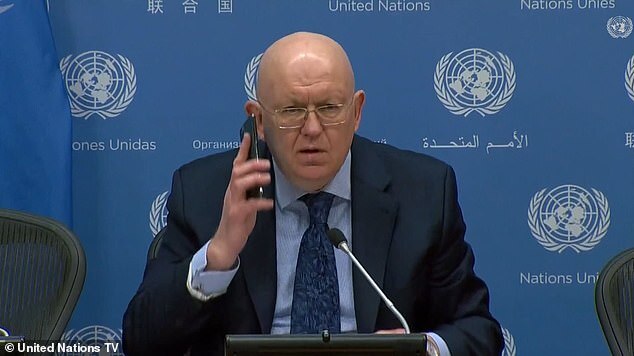 Vassily Nebenzia finished the call and turned back to journalists to say he had 'just received information that the US authorities have undertaken another hostile action against the Russian Mission to the ... United Nations.'