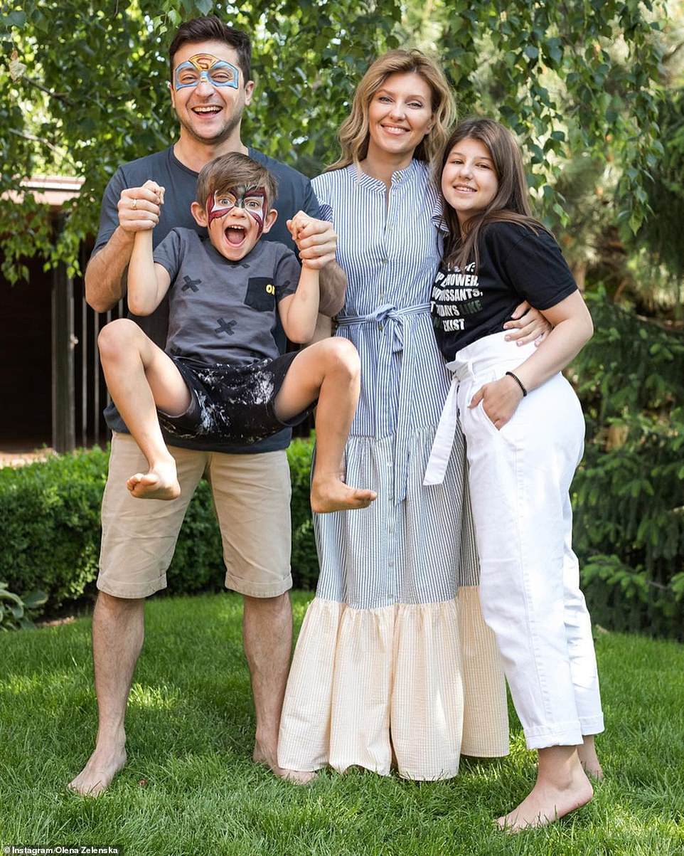 Constant support: Olena Zelenska with husband Volodymyr Zelensky and their children, Oleksandra and Kyrylo