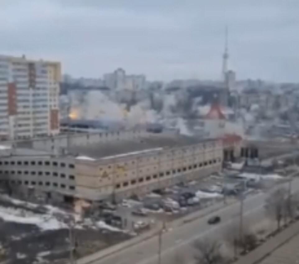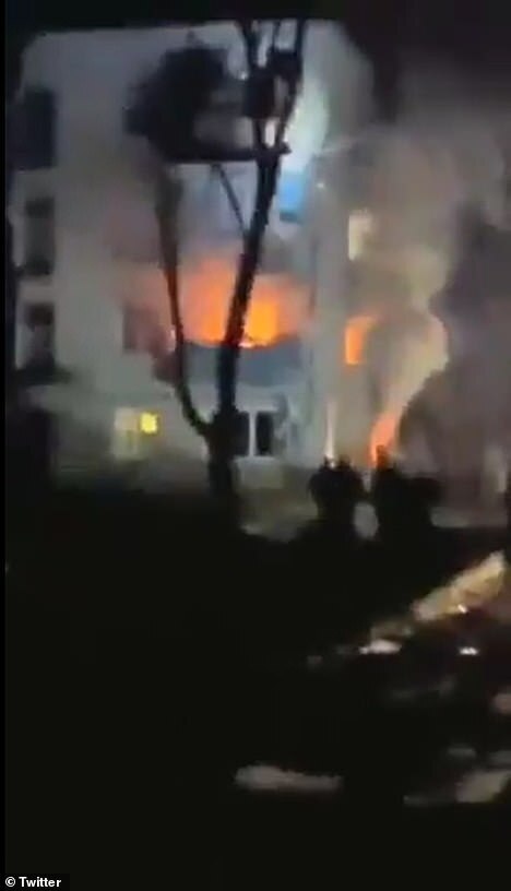 - Video showed moment that explosion rocked a suburb of the Ukrainian capital after night had fallen today