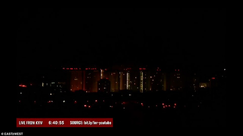 Dramatic video filmed in the Ukrainian capital showed the moment that the night sky lit up with an enormous fire ball that reportedly stemmed from a military radar communication center