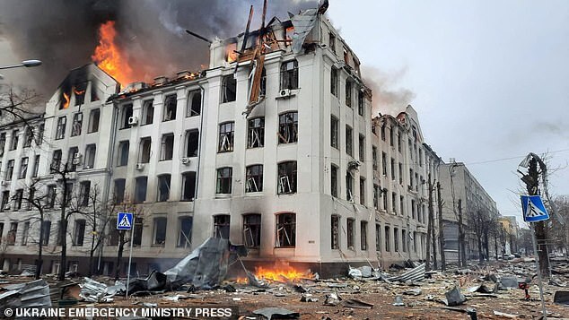 At least 21 people have been killed an 112 wounded in shelling on Kharkiv in the last 24 hours, governor Oleg Synegubov said, as an interior ministry official added: 'There are practically no areas left in Kharkiv where an artillery shell has not yet hit.'