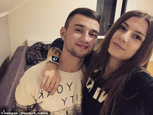 Sapylo, 21, (left) was a goalkeeper at third-division side Karpaty Lviv's youth team (pictured here with sister Marta)