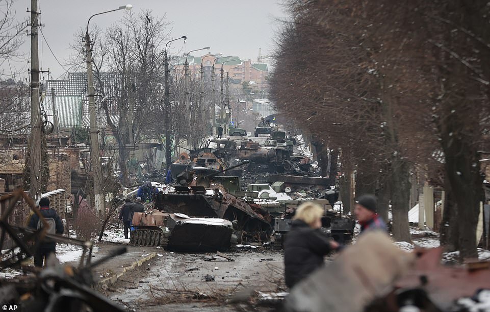 Klitschko said that fighting is still ongoing in the cities of Bucha and Hostomel, on the outskirts of Kyiv, where a large number of destroyed Russian vehicles were pictured on Wednesday. He implored people in the city 'not to lose endurance', saying all critical infrastructure is still running and humanitarian supplies are being handed out.