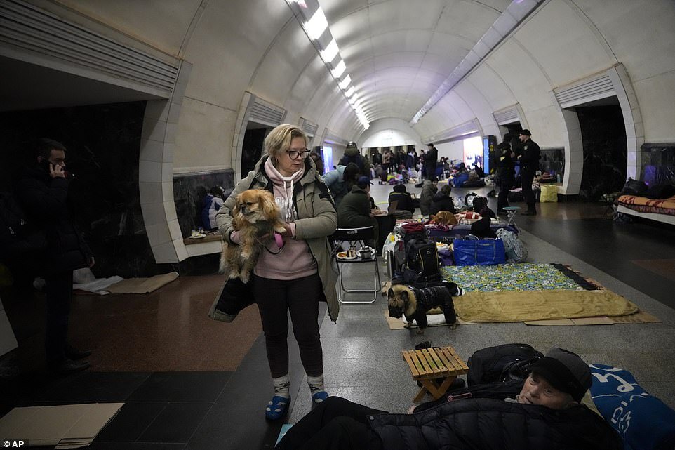People gather in the Kyiv subway, using it as a bomb shelter in Kyiv as Russian forces escalated their attacks on the city