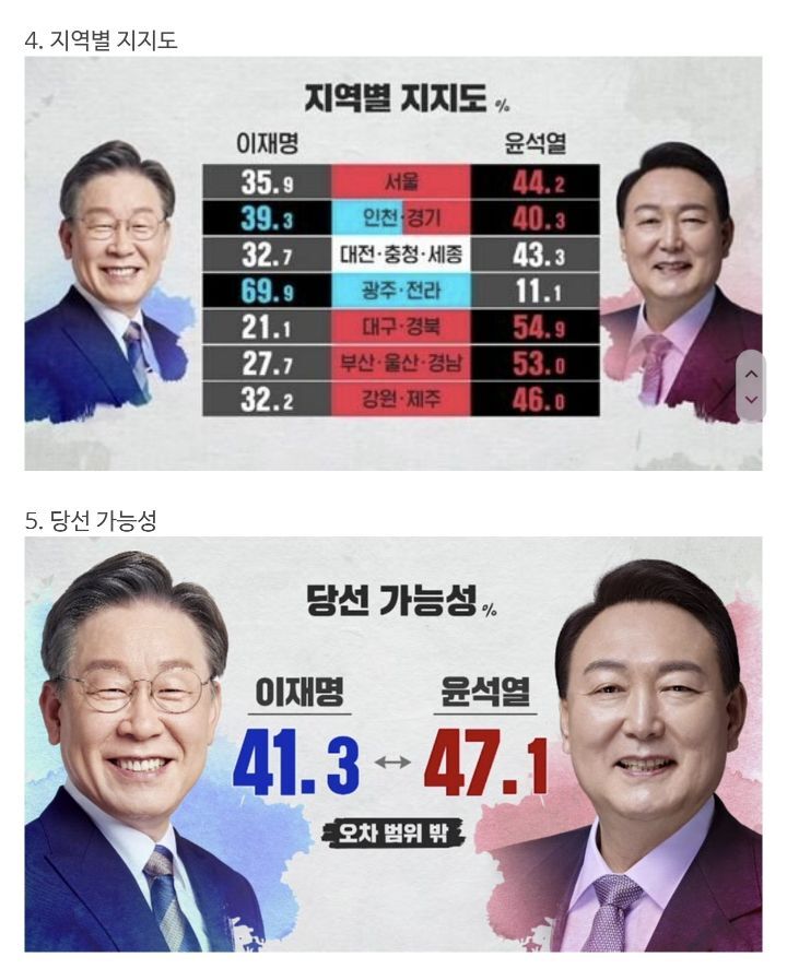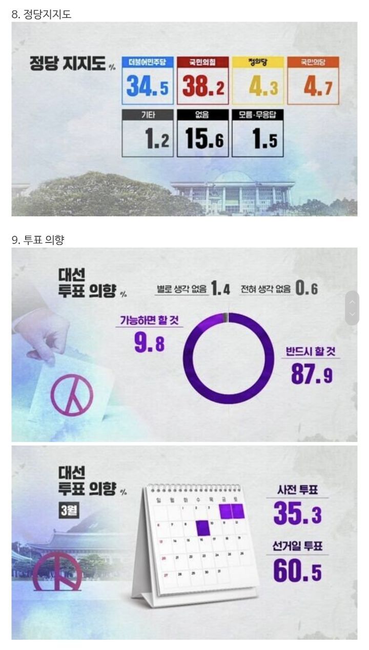 - 조사 기관 : 입소스, 코리아리서치, 한국리서치