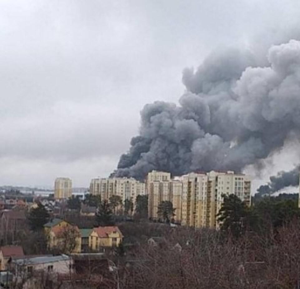 Heavy smoke blankets an area of Kyiv, the capital of Ukraine, after it was hit by Russian shelling